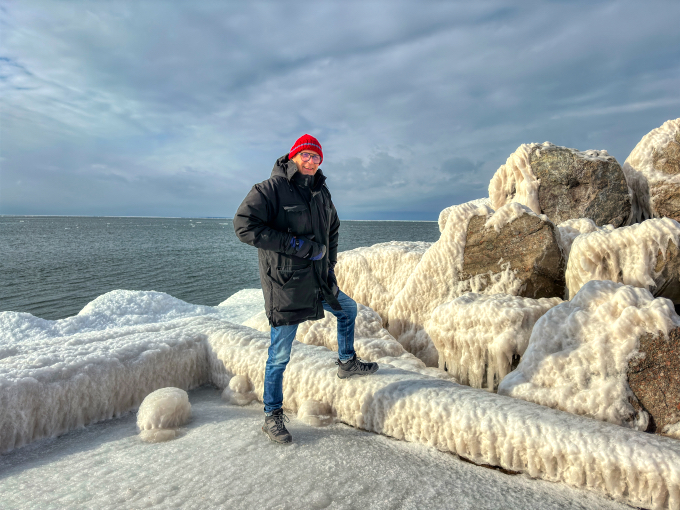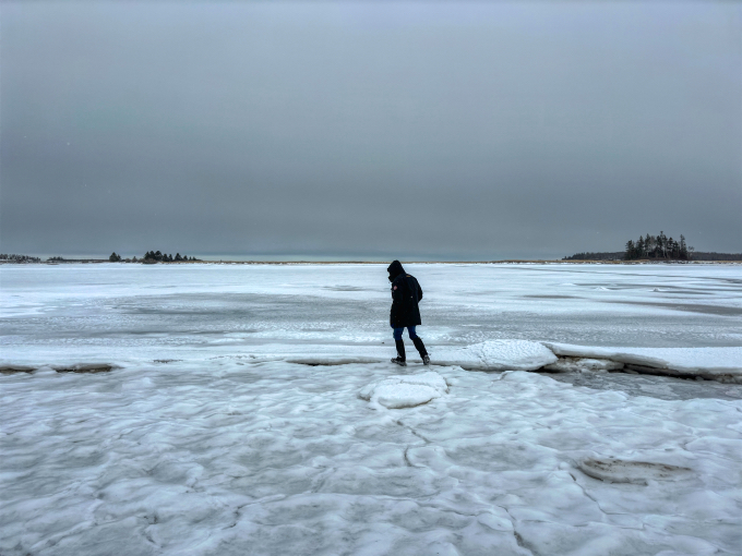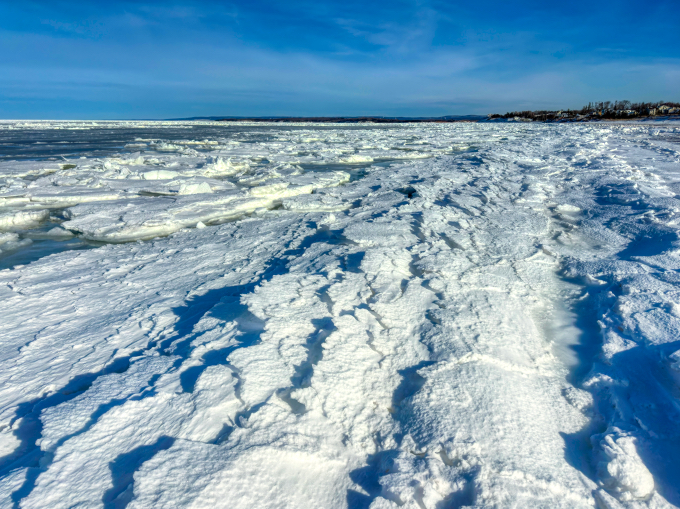 We have made a point of visiting as many beaches on the north shore as often as possible. Temperature, wind, freeze and thaw, sun, and clouds all collaborate to create conditions that shape an ever-changing coastal experience. Each day, the experience is different: open water one day, massive floes and packs of ice the next. It is never the same, never boring, always beautiful, and often extremely cold.
