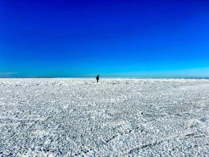 It’s no secret that the ocean is our happy place. It is why we decided to make Nova Scotia our home base. We love it best in the summer but genuinely love our winter explorations on ice on Nova Scotia’s north shore. We love walking on water, water that is frozen solid. We marvel at the frozen-in-place waves and ripples, the windswept patterns of sand and snow. We love the winter quiet of the ocean and the subtle shifts and sounds during a melt. The north shore beaches are places of wonder on any given day, more so in the winter.